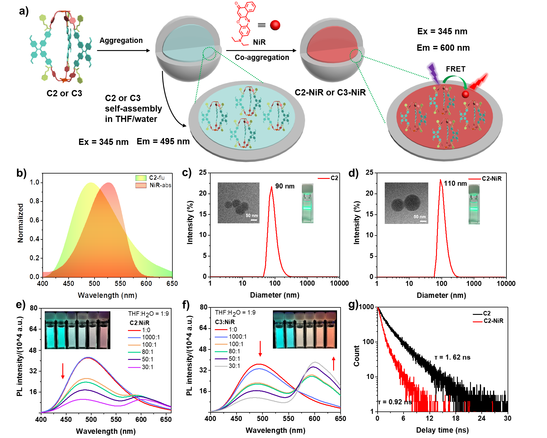 图2. 人造光捕获体系C2-NiR、C3-NiR的构建及其性质研究