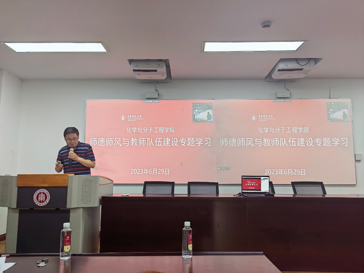 为进一步加强师德师风建设,规范教师职业行为,弘扬爱岗敬业、为人师表的美德,6月29日下午,奈飞工厂 党委于闵行校区化学楼135报告厅,同时与普陀校区化学馆A205连线,开展学院师德集中学习教育,学院全体教师出席会议。党委书记鲜跃仲对进一步强化师德师风建设进行宣讲领学,院长田阳对进一步加强全院师德师风建设提出工作要求。