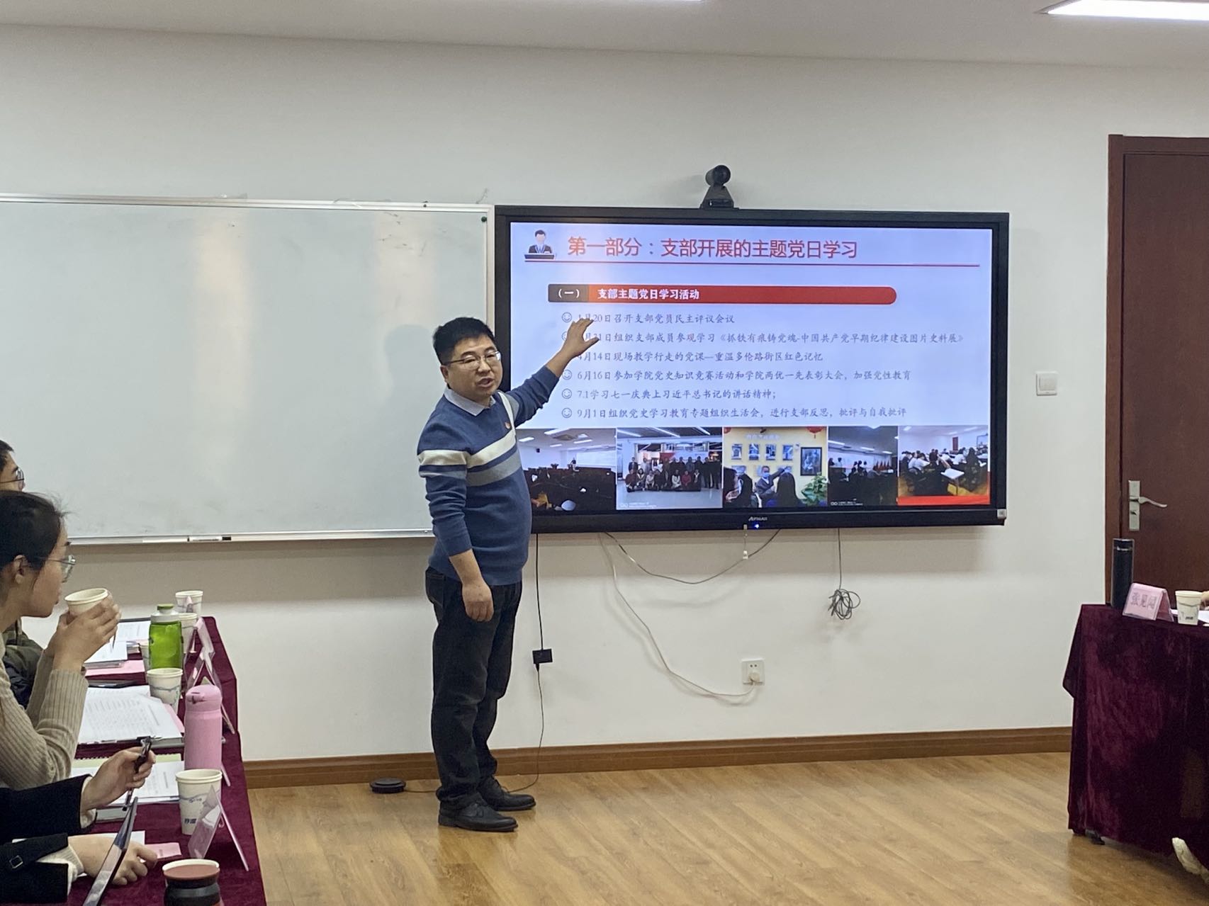 鲜跃仲在总结中用三个关键词“规范、融合、创新”对学院支部工作建设提出了建议。支部建设的规范性是全面从严治党的基本要求,在加强党员教育监督管理规范性的同时,支部更要注重党建工作与学校学院事业发展的深度融合。在强基固本的基础上,通过创新进一步提升党建引领作用,促进支部工作走深走实。述职评议会上,鲜跃仲还代表院党委对2021年学院党建工作开展情况进行了总结。2021年,学院党委聚焦党史学习教育、庆祝建党百年、立德树人根本任务、师德师风专题教育等重要工作,策划并开展了系列卓有成效的党建活动,以“见人见事见精神”的要求,大力推进党建工作与事业发展融合。同时,鲜跃仲也坦诚地向大家剖析了学院党建工作中存在的问题并提出以问题导向、需求导向和效果导向来进一步加强学院党建,推动学院事业高质量发展。
