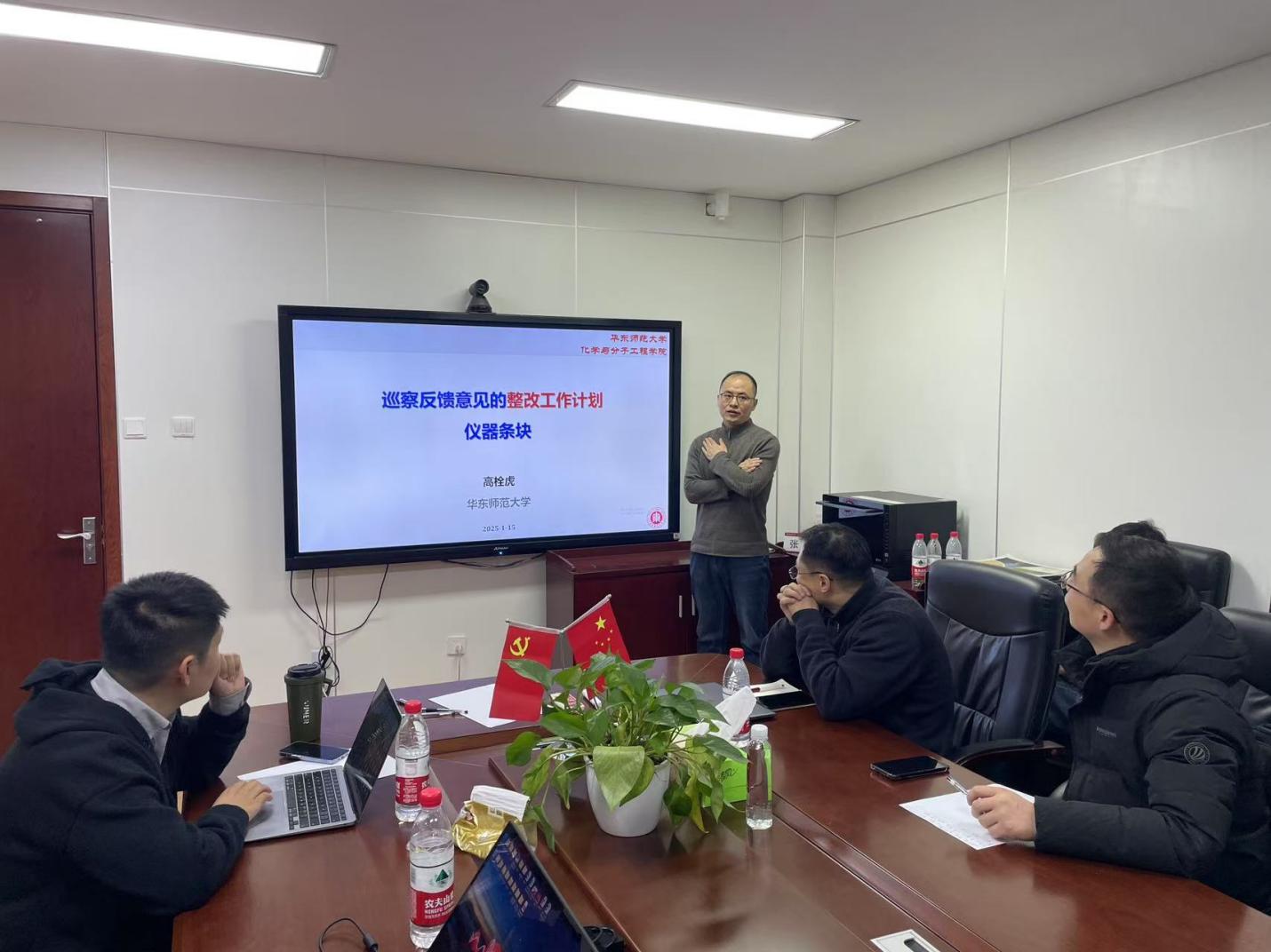 随后,副院长高栓虎针对巡察反馈的问题,介绍了学院在大型仪器管理方面的整改工作方案。他全面回顾了专项巡察提出的问题,就完善规范管理、加强平台建设、优化资源配置、健全防控机制、配强队伍建设等方面的工作计划进行了详细的说明。整改计划明确了责任人、厘清了人员职责、设定了整改的时间节点及整改反馈机制,确保整改工作落地见效。
