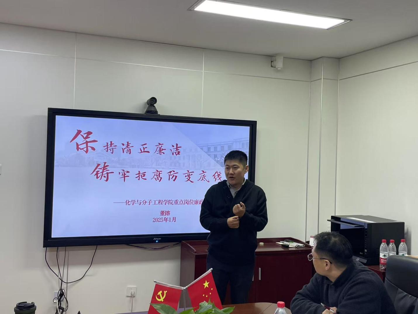 为进一步加强大仪开放共享过程中的廉洁风险防控,院党委副书记、纪检员董镕作了题为“保持清正廉洁,筑牢拒腐防变底线”的廉政教育专题报告。他结合学院大型仪器管理工作实际,从党中央反腐败斗争的具体背景出发,根据《中国共产党纪律处分条例》的相关规定,用具体案例向与会人员展示了常见的违规行为和处理结果,从而强化了学院大型仪器管理工作人员的廉洁意识,为大型仪器管理工作做了廉洁保障。