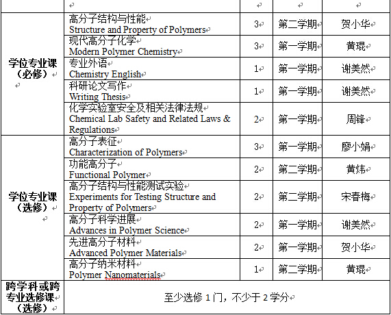 (二)在高分子学科上掌握坚实宽广的基础理论和系统深入的专门知识,同时要掌握一定的相关学科知识,具有独立从事科学研究工作的能力,在科学或专门技术上做出创造性的成果。