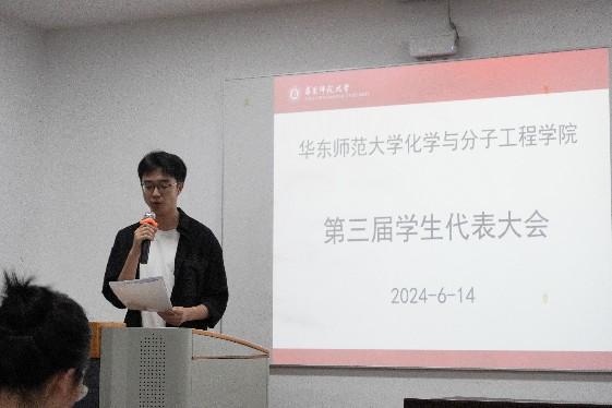 6月14日,化学与分子工程学院在闵行化学楼135报告厅隆重召开了第三次学生代表大会。参与本次会议的嘉宾有院党委副书记王婷婷老师,院团委书记、研究生辅导员冯琪老师,院本科生辅导员史琳老师,以及奈飞工厂 学生会综合管理中心负责人谢可可同学、生态与环境科学学院主席团朱颜同学。会议由学院第二届学生会主席团成员焦林翔同学主持,共计40位院学生会成员和学生代表到场参会。