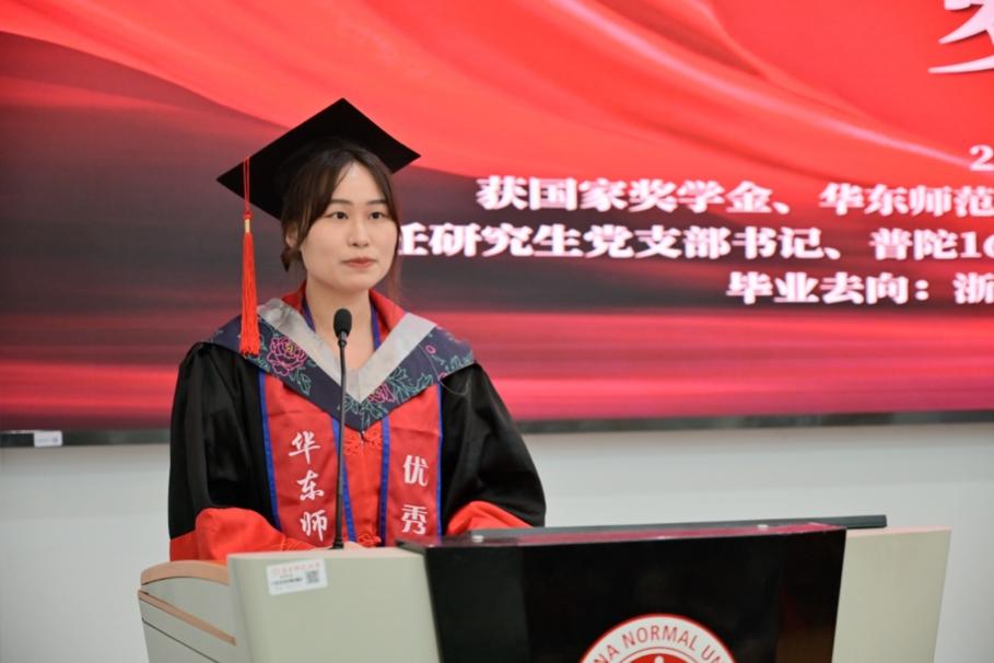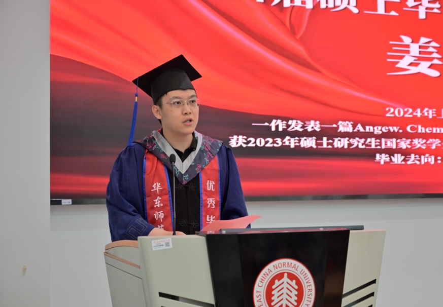 2024届硕士毕业生代表姜亦知感谢了母校、学院和师友们,指出攻读硕士是人生宝贵的三年,增长了知识和见识,更获得了独立思考和解决问题的能力。他号召全体毕业生以校训为指引,以求实创造的精神,为人师表的担当,去迎接每一个挑战,去创造每一个可能。