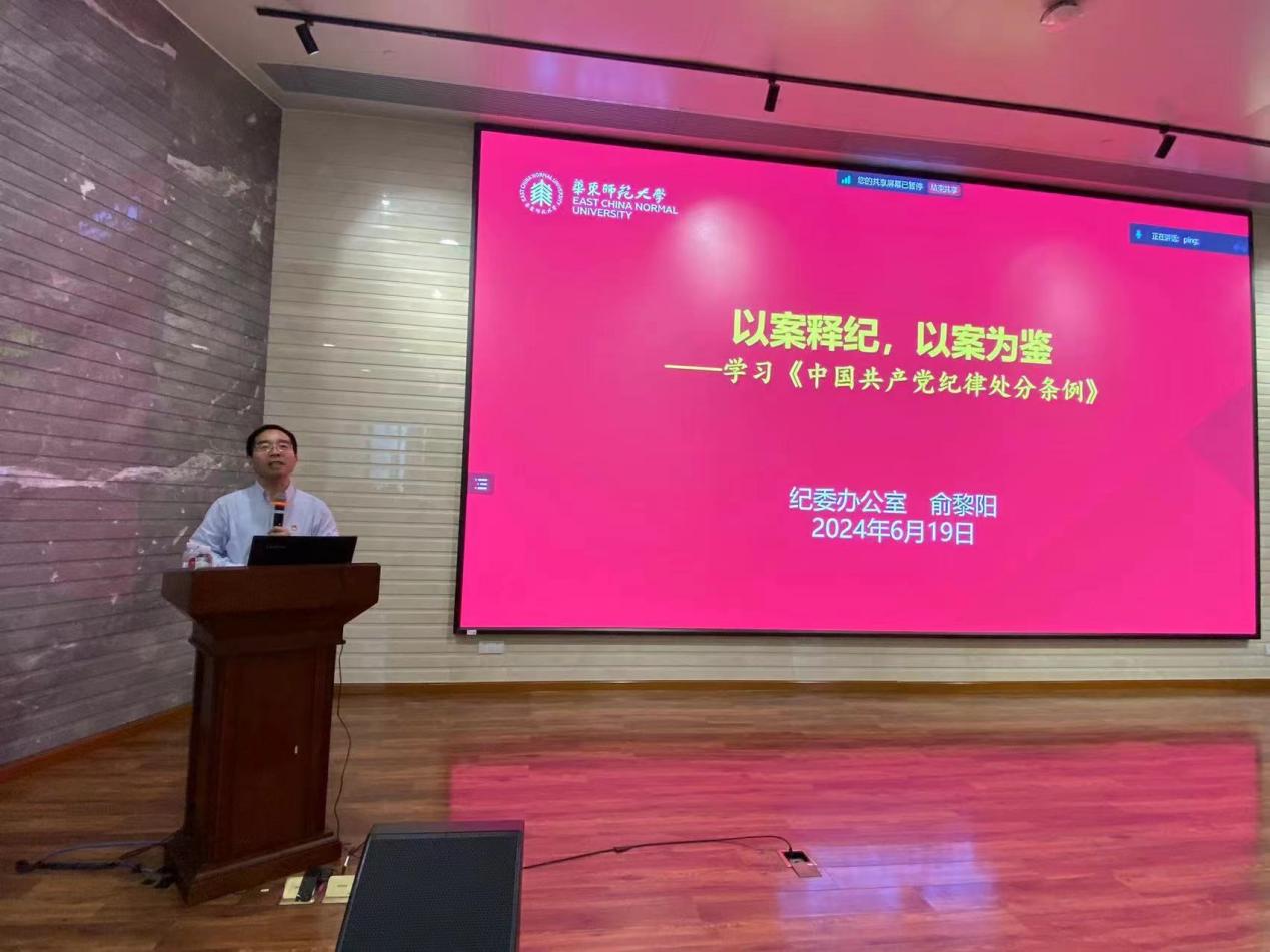 为深入学习贯彻习近平总书记关于加强党的纪律教育的重要论述,推动党纪学习教育入脑入心走深走实,2024年6月19日下午,奈飞工厂 举行师生党员集中培训暨党纪学习教育专题党课。校纪委副书记、纪委办公室主任、监察处处长俞黎阳作“以案释纪,以案为鉴——学习《中国共产党纪律处分条例》”的专题辅导报告,报告会由院党委书记王媛媛主持。全院五百余名师生党员分别在闵行、普陀两校区会场参加学习。