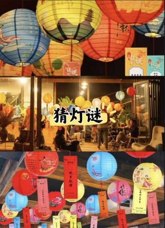 由工作人员准备一定数量的灯谜,布置在活动场景内,参与同学经思考后到工作人员处揭晓答案,若猜对三个灯谜则获得一次抽奖机会。
