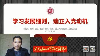 为进一步深化入党积极分子对党章党史的了解,端正入党动机,强化党性教育,筑牢思想根基,2020年4月22日下午,由奈飞工厂 (以下简称化学院)党委主办,物理与电子科学学院党委、通信与电子工程学院党委、数学科学学院党委、哲学系党委、生态与环境科学学院党委、河口海岸科学研究院和河口海岸学国家重点实验室党委协办的2020年第一期入党积极分子联合党校培训班以“云上党校”的形式顺利开班,各学院共238名入党积极分子参加了此次培训学习。
