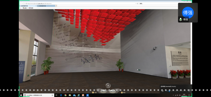 首先,童老师欢迎并介绍了本次党校培训班的主讲嘉宾傅强老师。傅老师是上海交通大学钱学森图书馆社教宣传部部长、副研究馆员,也是中国浦东干部学院课外教学点教员、上海市委宣传部东方讲坛特约讲师、资深博物馆教育工作者。本次党校培训班的内容包括两个板块,第一版块是依托钱学森图书馆(以下简称钱馆)“虚拟漫游馆”,由傅强老师带领学员们“云导览”;第二版块是题为“优秀共产党员——人民科学家钱学森”的主题报告。