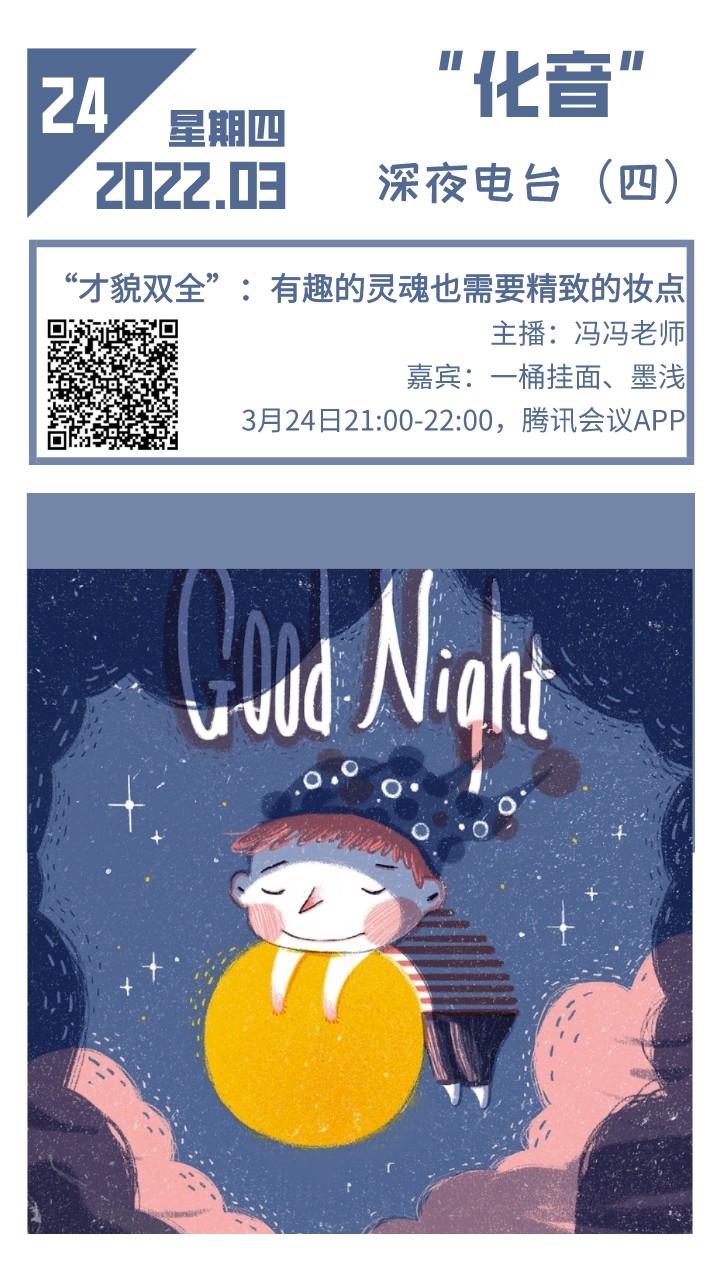 3月24日晚9:00点,“化音”深夜电台(第四期)与大家再次相见。本期以“‘才貌双全’:有趣的灵魂也需要精致的妆点”为主题,邀请了“墨浅”“一桶挂面”(昵称)两位嘉宾,与主播冯冯老师共同讨论关于护肤、美妆、穿搭的秘诀,以及个人外在形象与内在涵养的统一关系。