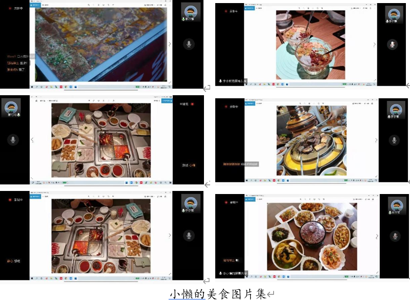 在美食分享版块,小懒用臭豆腐、热干面、麻辣拌、火锅、冰粉、螺蛳粉勾起了大家对家乡的味觉记忆;用海底捞、江边城外、石锅鱼、齐齐哈尔烤肉让大家升腾起疫情散去后的聚餐约定;用夏雨厅、秋实阁、秋林阁、冬日冬月厅的美食让我们怀念起坐在洁白桌椅上堂食的日子……