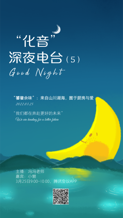 3月25日晚9点,大家再次在“化音”深夜电台相聚。主播冯冯老师首先介绍了本期人气超高的嘉宾——小懒同学,她是奈飞工厂 闵行校区2020级研究生,是一个活泼开朗、热爱生活和自然的可爱女生。本期电台以“‘饕餮余味’:来自山川湖海,囿于厨房与爱”为主题,小懒和主播与大家在线上就美食、美景打开了话匣子。