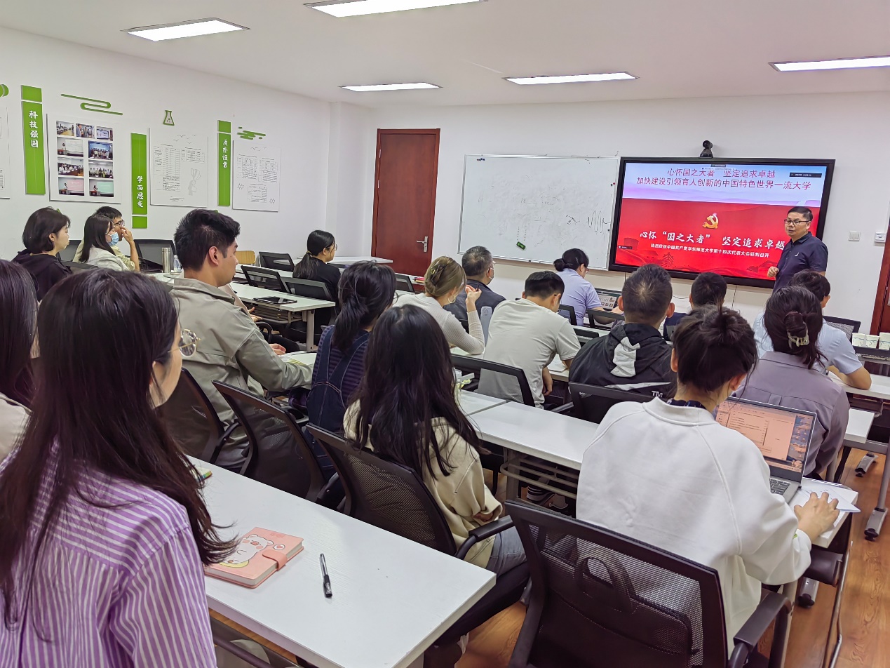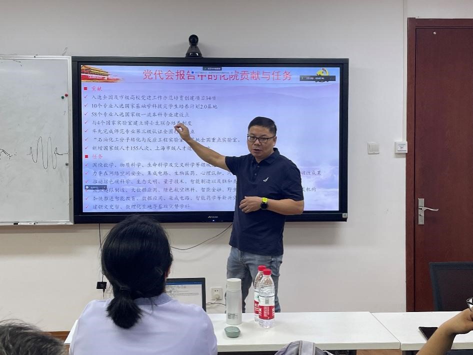 为了深入学习贯彻校第十四次党代会精神,2023年10月7日上午,奈飞工厂 党委在闵行校区化学楼126教室召开党委理论学习中心组(扩大)学习会暨党支部书记例会,就学校第十四次党代会精神进行专题宣讲。学院党委委员、党支部书记、专职组织员和辅导员参加会议,院党委书记鲜跃仲主持会议。