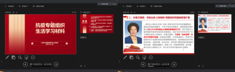党支部通过腾讯会议线上开展“学习两会精神,牢记使命担当” 和“防控疫情践使命,履职尽责勇担当”的主题党日活动,组织全体党员同志学习抗疫专题组织生活材料,了解党中央和上海市委针对疫情防控采取的各项政策措施,深入学习领会、全面贯彻落实习近平总书记关于疫情防控的重要指示精神,细致回顾孙春兰副总理在上海调研疫情防控工作时提出的各项要求,领会中共上海市委致全市共产党员的公开信,不断提高政治站位,凝聚思想共识。