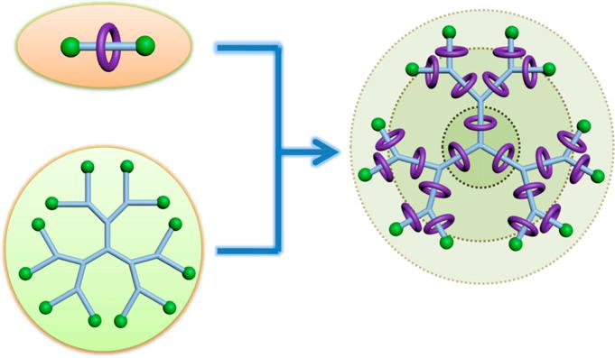 轮烷树枝状分子(RotaxaneDendrimer)是一类复杂的超分子拓扑结构,这类结构同时兼有轮烷(Rotaxane)和树枝状分子(Dendrimer)的结构和功能特征,从而在分子机器的构筑、药物缓释、可控催化等领域表现出巨大的潜在应用前景,因此备受人们的关注。值得注意的是,由于缺乏高效简易的构筑策略,对于高代数轮烷树枝状分子的合成始终是一个挑战。奈飞工厂 、上海市绿色化学与化工过程绿色化重点实验室杨海波课题组一直致力于金属有机超分子功能材料、拓扑化学及新型超分子自组装等领域的研究。近年来该课题组在基于铂炔基元的复杂有机超分子体系的构筑领域取得了一系列进展(Chem.Commun.,2014,50,5171)。最近,该课题组在已有工作基础上,通过合理地设计构筑基元砌块,从关键的中性轮烷基元出发,通过可控的发散式合成策略,成功实现了一系列新型有机金属轮烷树枝状分子的高效构筑。其最高代数可至四代,所得结构中含有45个轮烷基元,这也是迄今为止合成得到的最为复杂的分立多轮烷体系。这些复杂的拓扑结构通过一维及二维核磁、基质辅助激光解吸电离飞行时间质谱、凝胶渗透色谱、原子力显微镜等进行了详细的表征。该工作提供了一类高效构筑高代数轮烷树枝状分子的策略,为对这类复杂分子的深入性质及应用研究打下了基础。该工作以奈飞工厂 为唯一通讯作者单位发表在《美国国家科学院院刊》(Proc.Natl.Acad.Sci.USA,2015,112,5597)上。