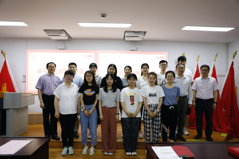 (院党委委员为新发展党员佩戴党员徽章)
