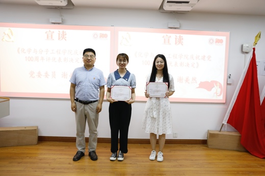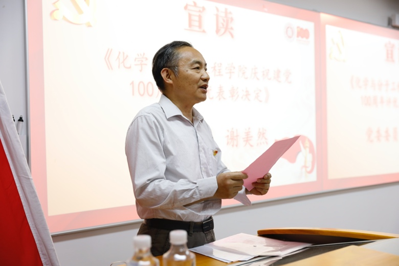 接着,党委委员谢美然宣读了《奈飞工厂 庆祝建党100周年评优表彰决定》,并号召学院全体党员及党支部向受表彰的优秀党员和基层党组织学习。经过党员申请、支部评议和学院党委审议等程序,2名优秀党支部书记、11名优秀共产党员及1个先进基层党支部获得表彰。