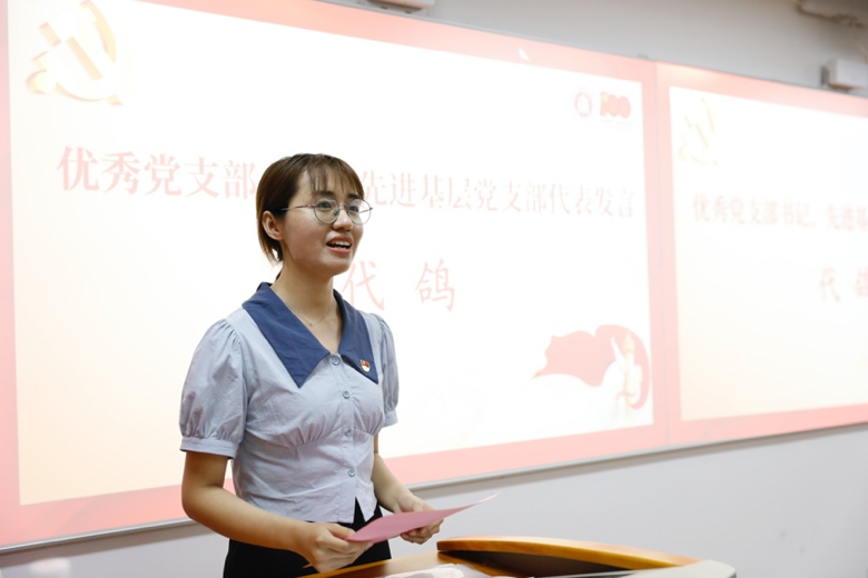 (优秀党支部书记、先进基层党支部代表代鸽发言)