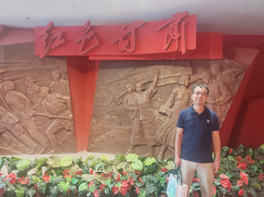 陇原大地在波澜壮阔的革命历程中留下了众多的革命遗址遗迹,刘路老师在研学之余参观了甘肃博物馆红色甘肃展厅。甘肃是一个有着悠久历史和光荣传统的省份,在风起云涌的革命年代,甘肃特支的成立,南梁烽火的燃起,陕甘根据地的创建,红军长征胜利会师,西路军的河西鏖战,以及人民解放军的胜利进军等一系列鲜活的革命历史进程,谱写了甘肃各族人民在中国共产党领导下中国社会一步步实现由衰败走向复兴的伟大历史画卷。
