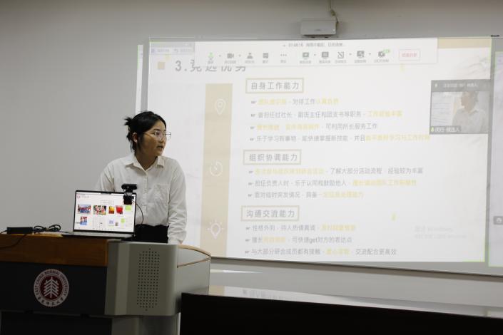 在宣读选举办法之后,第九届研究生会主席团候选人依次上台发表了竞选演讲。来自中北、闵行校区共8位候选人分别从个人背景、工作经历等两方面做了详细的自我介绍,并详细阐述了他们对学院研究生会今后的发展规划、展望,表达了愿意与研会一路同行的担当和愿景。