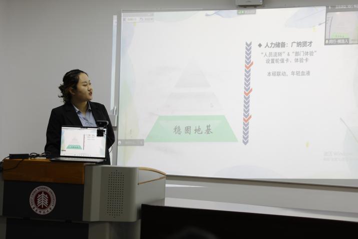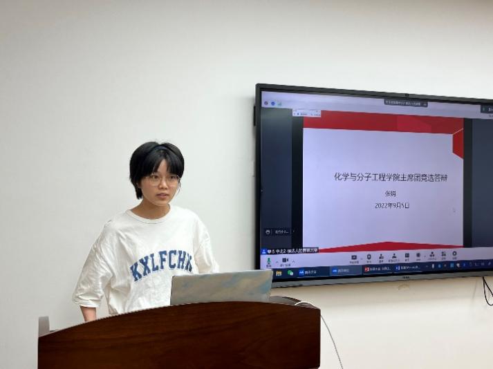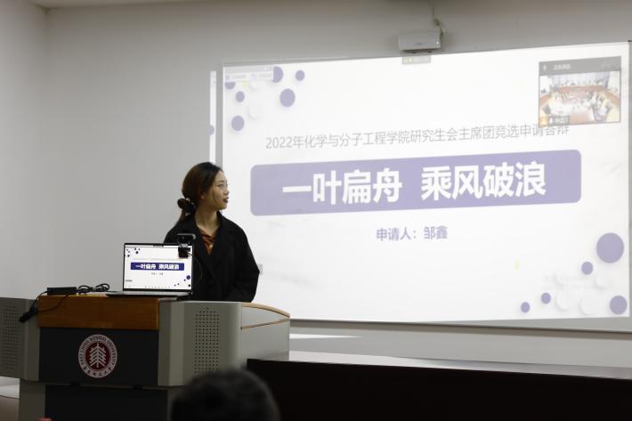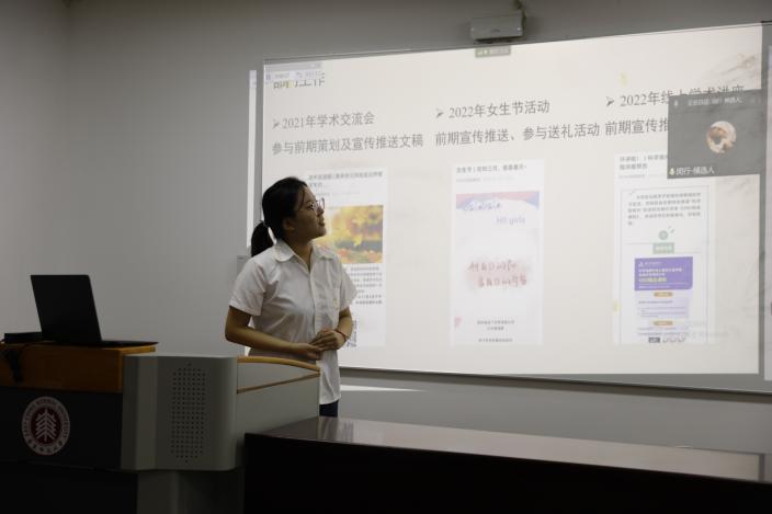 第八届研究生会执行主席赵捷向全体成员总结了过去一年的工作情况。她首先介绍了第八届研会的组织架构调整,概述了这一年研会举办的涵盖“文-娱-团-学-就业”等方面的37场活动,特别介绍了“化音电台”“化影”“化聚生活”等系列主题活动,并指出学院研会在本年度对校会工作的支持与配合、与兄弟院系的积极合作。赵捷说到,第八届化院研会充分把握了本院同学的需求,有针对性地对各部门进行了调整和完善,为化院师生提供了更好的服务,此外,也考虑了本院分校区教学的实际情况,增强了线上宣传平台建设。对于下一届研会的期许,赵捷则希望能继续与兄弟院系求合作、促创新,积极开展更多让同学们喜闻乐见的活动。