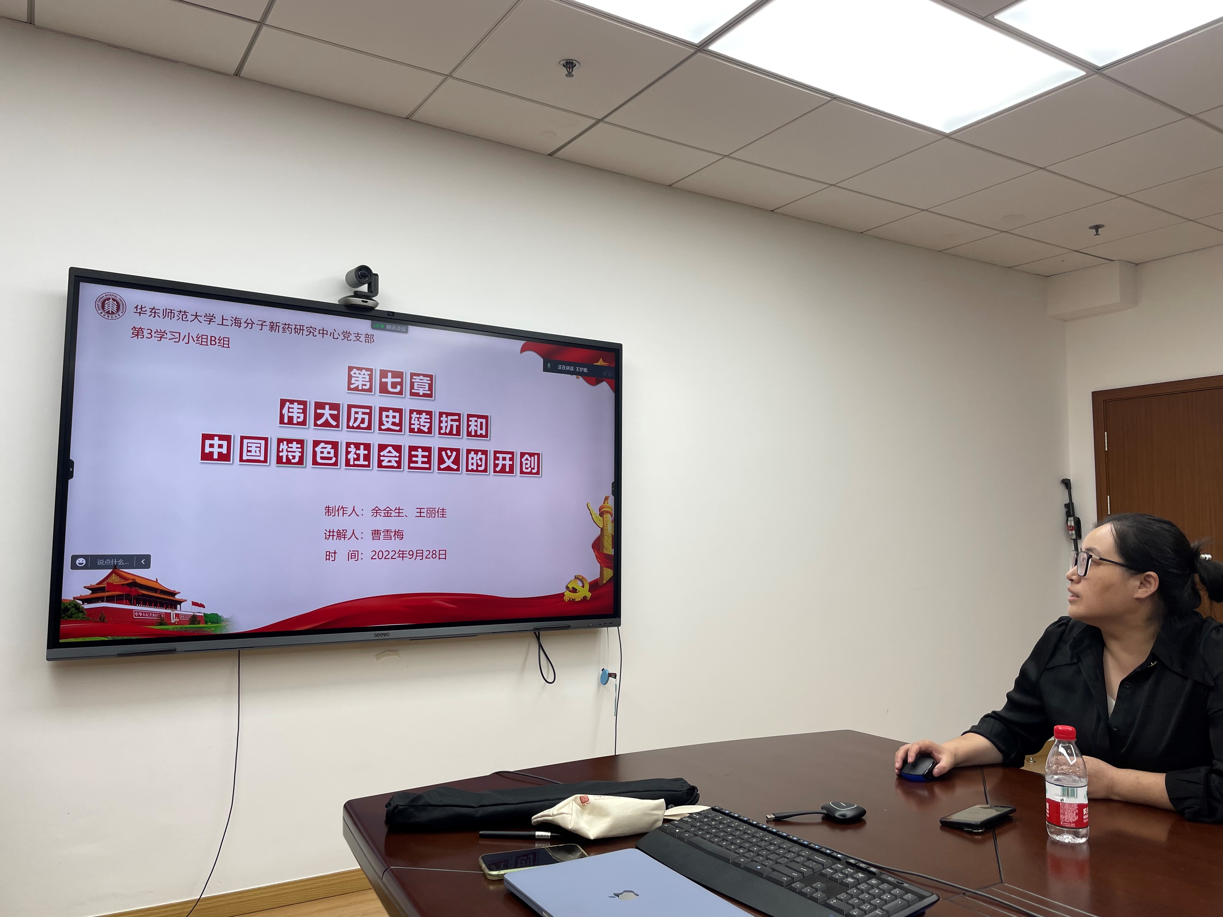 为迎接党的二十大胜利召开,扎实推进党史学习教育常态化长效化,把党史学习教育融入日常、抓在经常。9月28日,上海分子新药研究中心党支部开展了主题为“喜迎二十大,奋进新征程”的党日活动,全体支部党员参与会议,因故未能出席现场的党员通过腾讯会议在线参加,会议由支部书记张亮主持。
