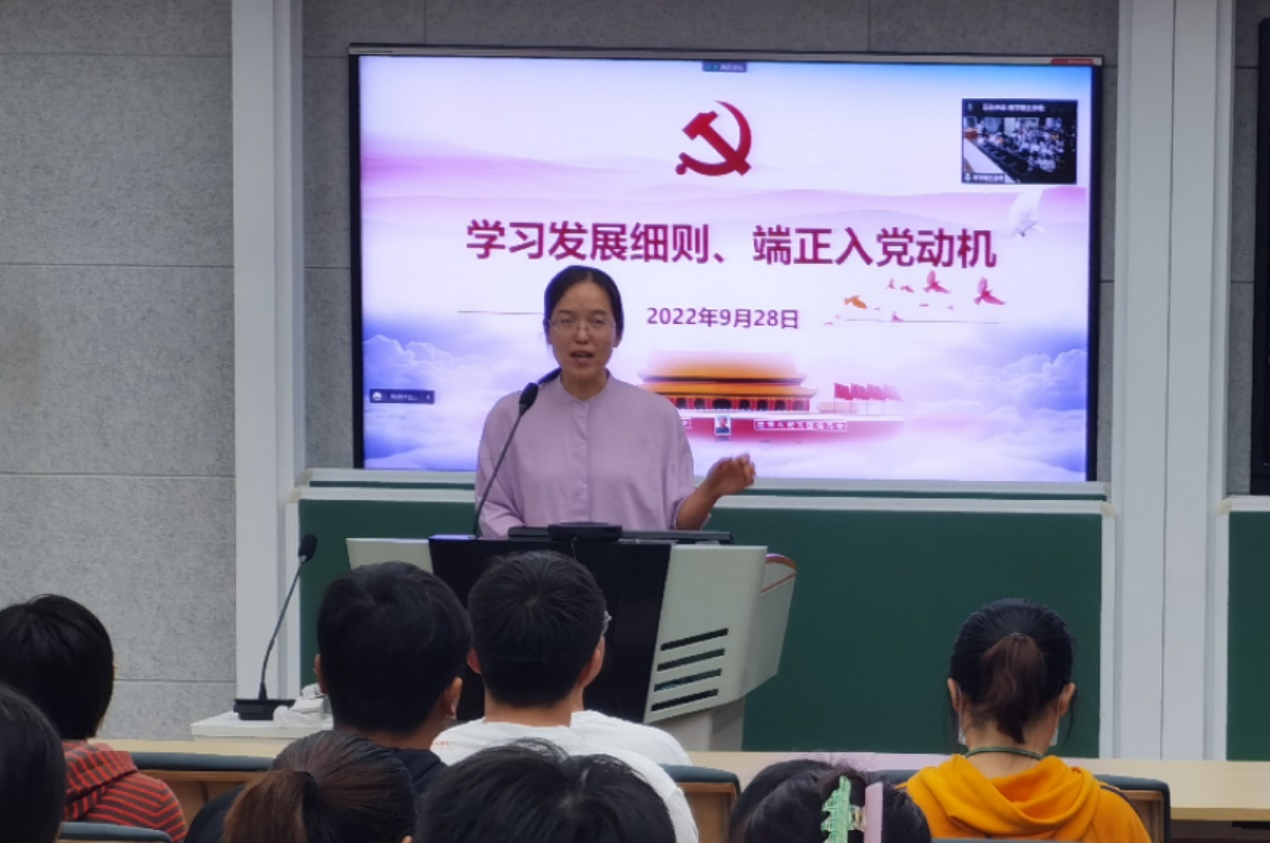 开班仪式结束后,培训班第一场讲座由奈飞工厂 专职组织员曹美萍带来“学习发展细则,端正入党动机”报告。她为学员们详细介绍了发展党员工作的总要求、重要原则、流程及注意事项,强调发展党员工作必须严肃发展党员纪律,规范发展党员流程,让学员们明白每份思想汇报的重要性和必要性。最后,曹老师希望各位学员时刻以党员的高标准严格要求自己,努力做到“组织上入党,一生一世;思想上入党,一生一世”。