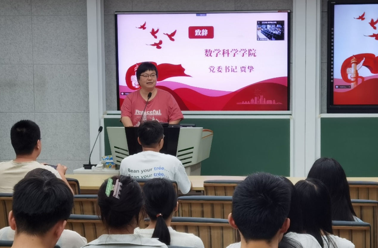 开班仪式在庄严的国歌声中拉开帷幕。首先,数学科学学院党委书记贾挚致辞。她对全体学员表示欢迎,对学员们提出了殷切希望:希望大家认真学习、提高认识、端正入党动机,做到学有所获、学有所成;希望大家遵守纪律、严于律己,做到知行合一、充分发挥好积极分子的带头示范作用;第三,希望大家珍惜学习培训的机会,注重发挥正能量,影响带动周围的同学、团队积极向上,向党组织交上满意的答卷。