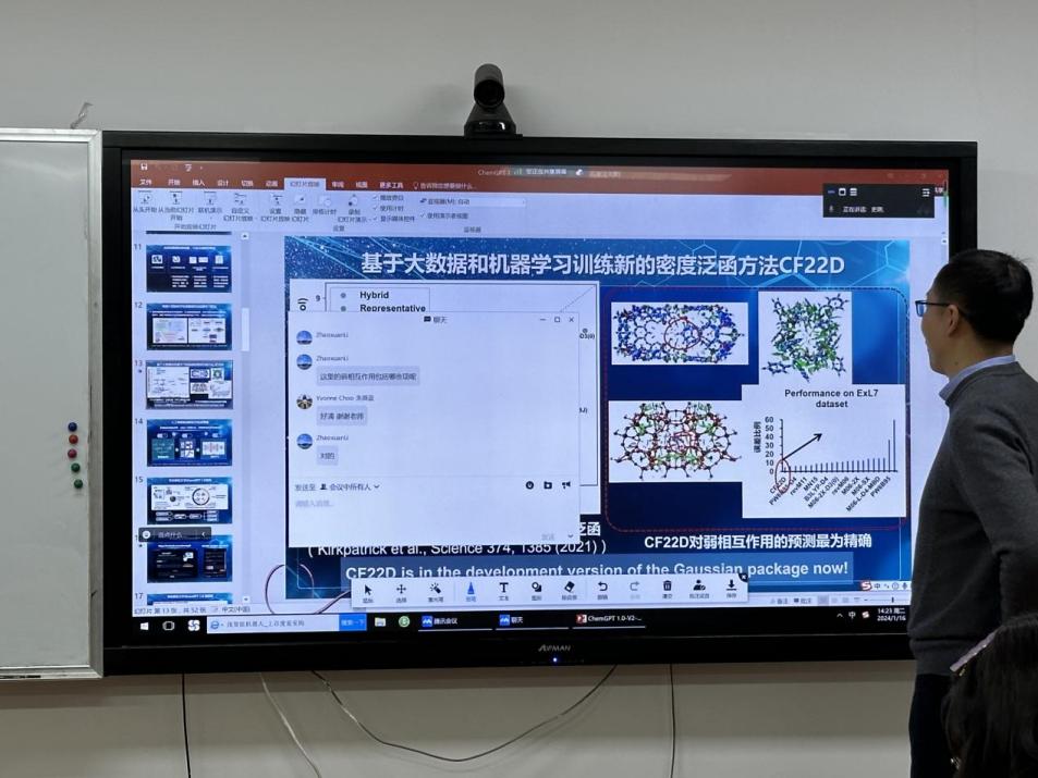 1月16日下午,为响应学校“寒假预备周”思维训练活动的号召,引导同学们学习掌握化学AI模型工具,化学院教授、博士生导师何晓老师于闵行化学楼126会议室(结合线上)开展了ChemGPT 1.0宣传讲座。