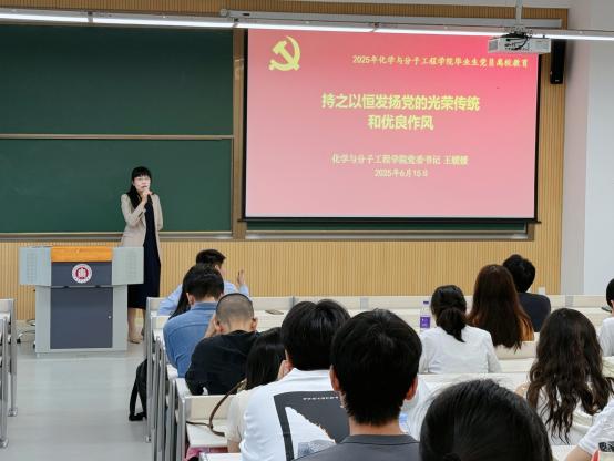 本次毕业生党员离校教育活动,既是加强党员教育管理的重要举措,也是对毕业生党员的一次深刻的思想洗礼。化学院2025届毕业生党员将带着母校和师长的期望和嘱托,在未来的学习和工作中鼓足干劲、昂扬斗志,切实为强国建设、民族复兴伟业贡献智慧和力量。