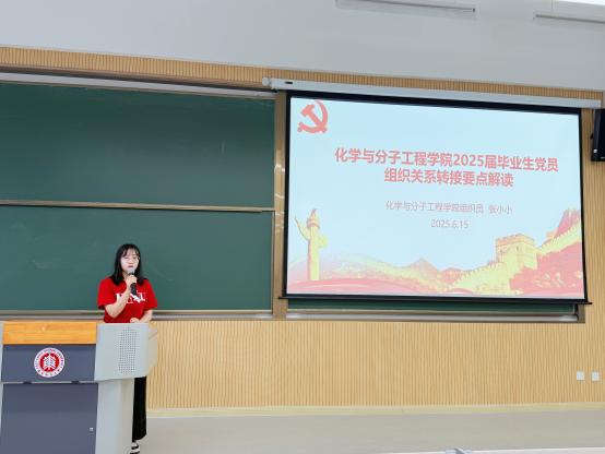 学院党委组织员张小小讲解毕业生组织关系转接工作要求,希望全体毕业生党员锤炼坚强党性,积极发挥作用。