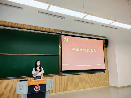 毕业生党员代表、2021级化学专业本科生袁思睿回顾自身在党组织引领下、在师长指导下的学习成长经历,立志在未来工作岗位上踔厉奋发,以实际行动践行初心使命。