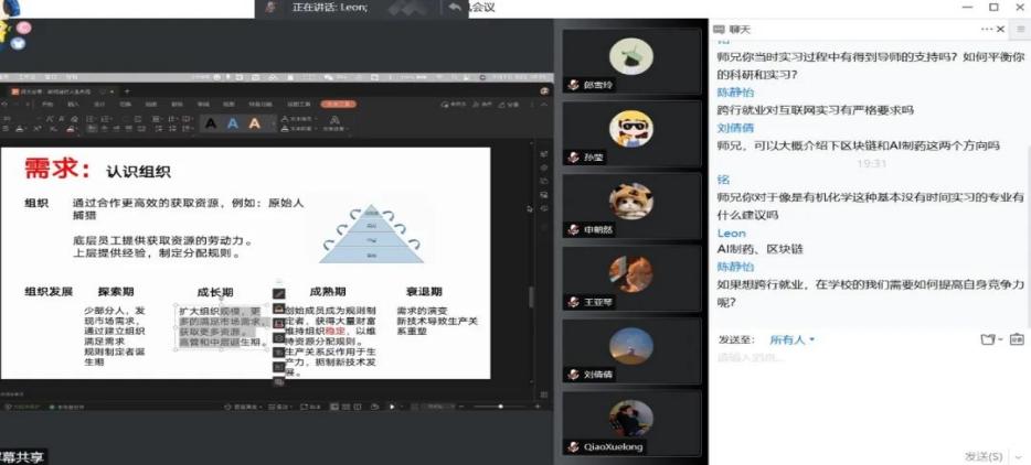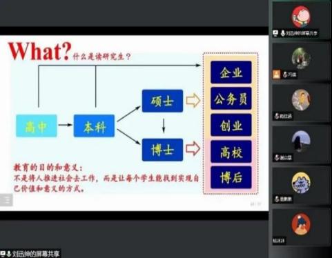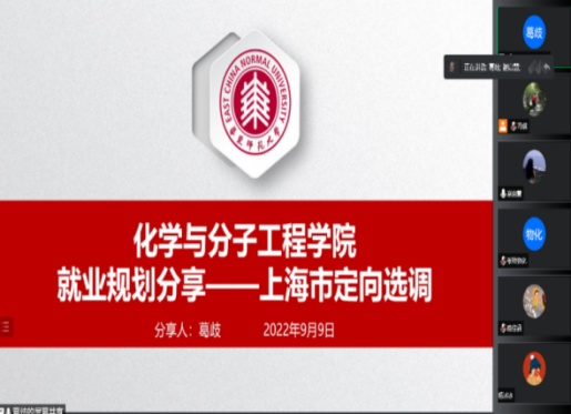 9月9日下午1点,新生教育活动之规“‘化’研途·师兄有话说”通过线上会议的形式开展, 会议邀请了2022届考取上海杨浦区选调生的硕士毕业生葛歧同学,以及拿offer到手软的博士毕业生刘迅绅同学作为开讲嘉宾。此次活动让新生对研究生生活有了更深刻的理解,不仅需要有规划的磨练自己的科研能力,其他能力也需努力提 升,不断丰富自己的生活。