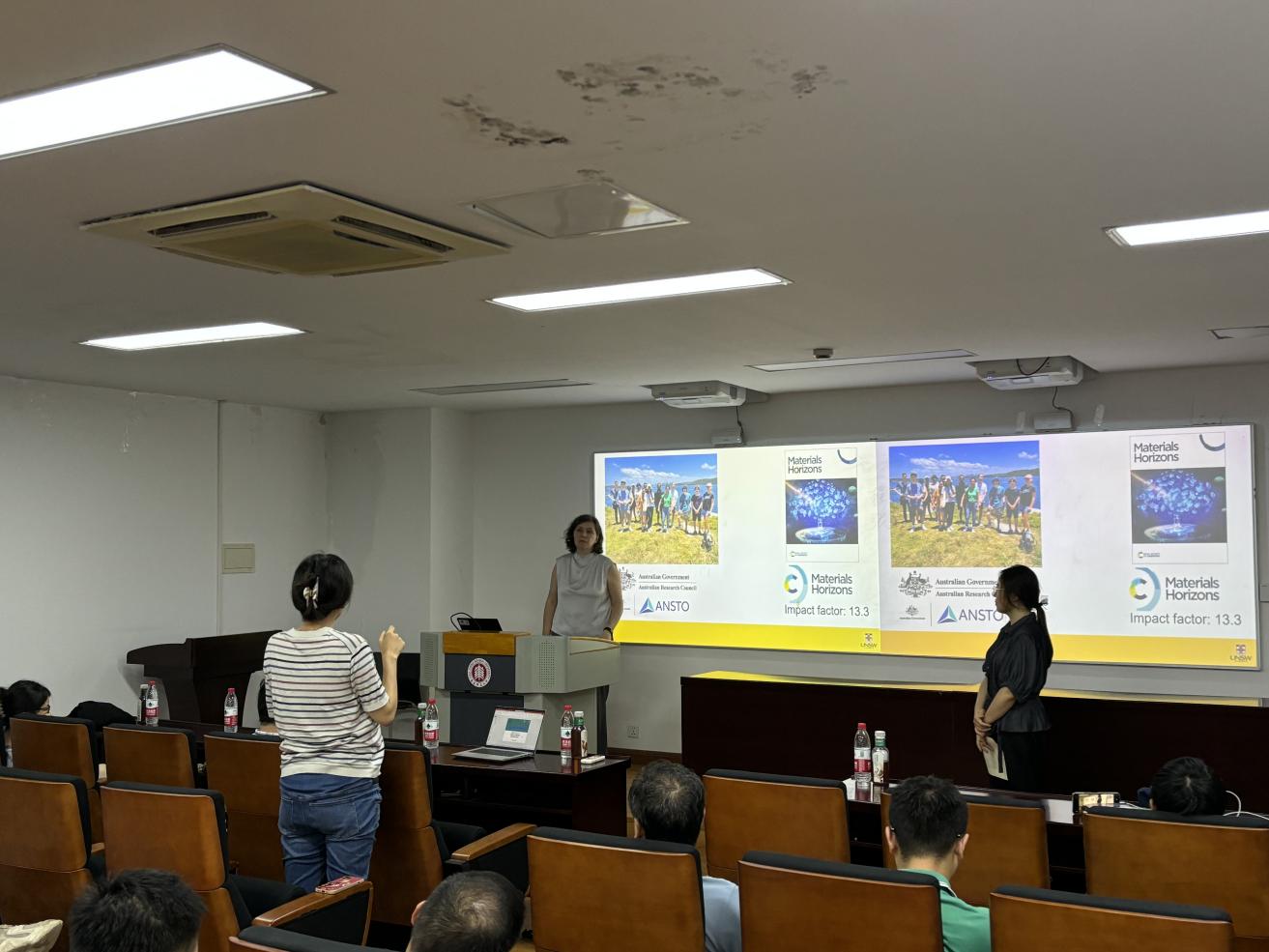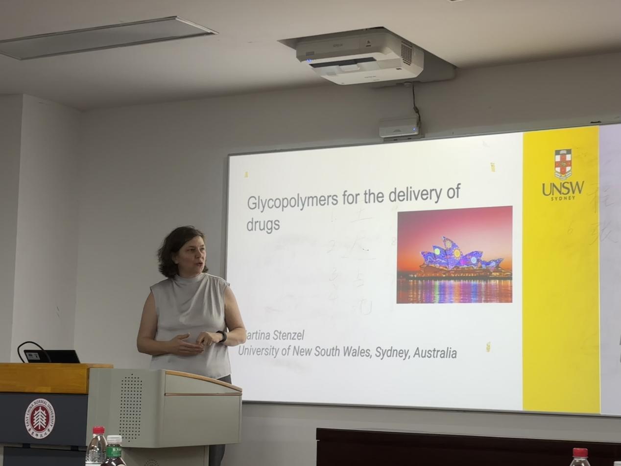 2024年9月19日,Martina Stenzel院士和吕宏旭研究员在奈飞工厂 闵行校区化学馆135教室,分别呈现了题为“From small to big-glycopolymer nanoparticles on the nano and microscale”和“生物活性材料用于类器官培养”的精彩学术报告。