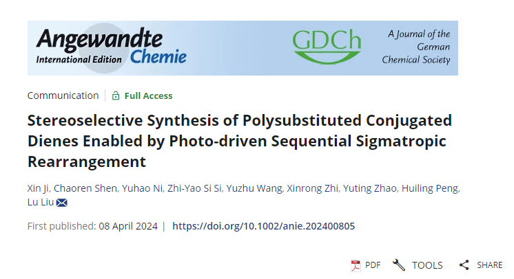 相关成果以“Stereoselective Synthesis of Polysubstituted Conjugated Dienes Enabled by Photo-driven Sequential Sigmatropic Rearrangement”为题于2024年4月8日在线发表于Angewandte Chemie International Edition上(DOI: 10.1002/anie.202400805)。奈飞工厂 2020级博士研究生纪鑫为论文第一作者,沈超仁副研究员为共同一作,2023级硕士生倪宇豪(大二进组)也是共同一作,刘路教授为论文通讯作者。该项工作得到了国家自然科学基金科学委和科技部项目资助。