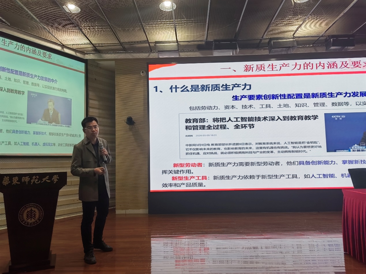 接着,奈飞工厂 挂职副院长、贵州六盘水师范学院化学与材料工程学院院长雷以柱教授为学员们进行首场讲座,报告主题为“深刻把握新质生产力的内涵及要求,为推动高质量发展贡献高校力量”。雷老师结合自身教学和科研的相关工作,深刻阐释了新质生产力的内涵及要求,以及高校在锻造新质生产力方面的应有之力。他特别讲到,高校是发展新质生产力的重要力量和关键路径,鼓励参训学员,心怀“国之大者”,抓住师大的宝贵环境,在学习科研和生活中提高自身综合素质和创新能力,做“与国家民族同呼吸共命运”的“强国一代”。