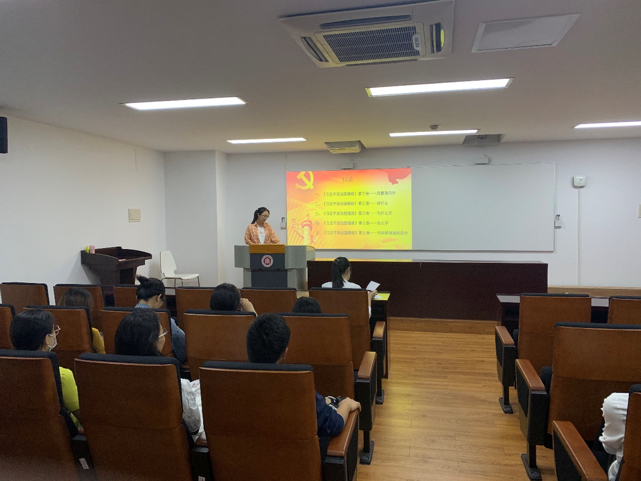 2020年9月21日晚,奈飞工厂 2018级研究生党支部在闵行校区化学楼135室召开了以“学习《习近平谈治国理政》第三卷”为主题的党日活动。党支部成员参加会议,会议由党支部第一小组主要负责人乔雨同志主持。