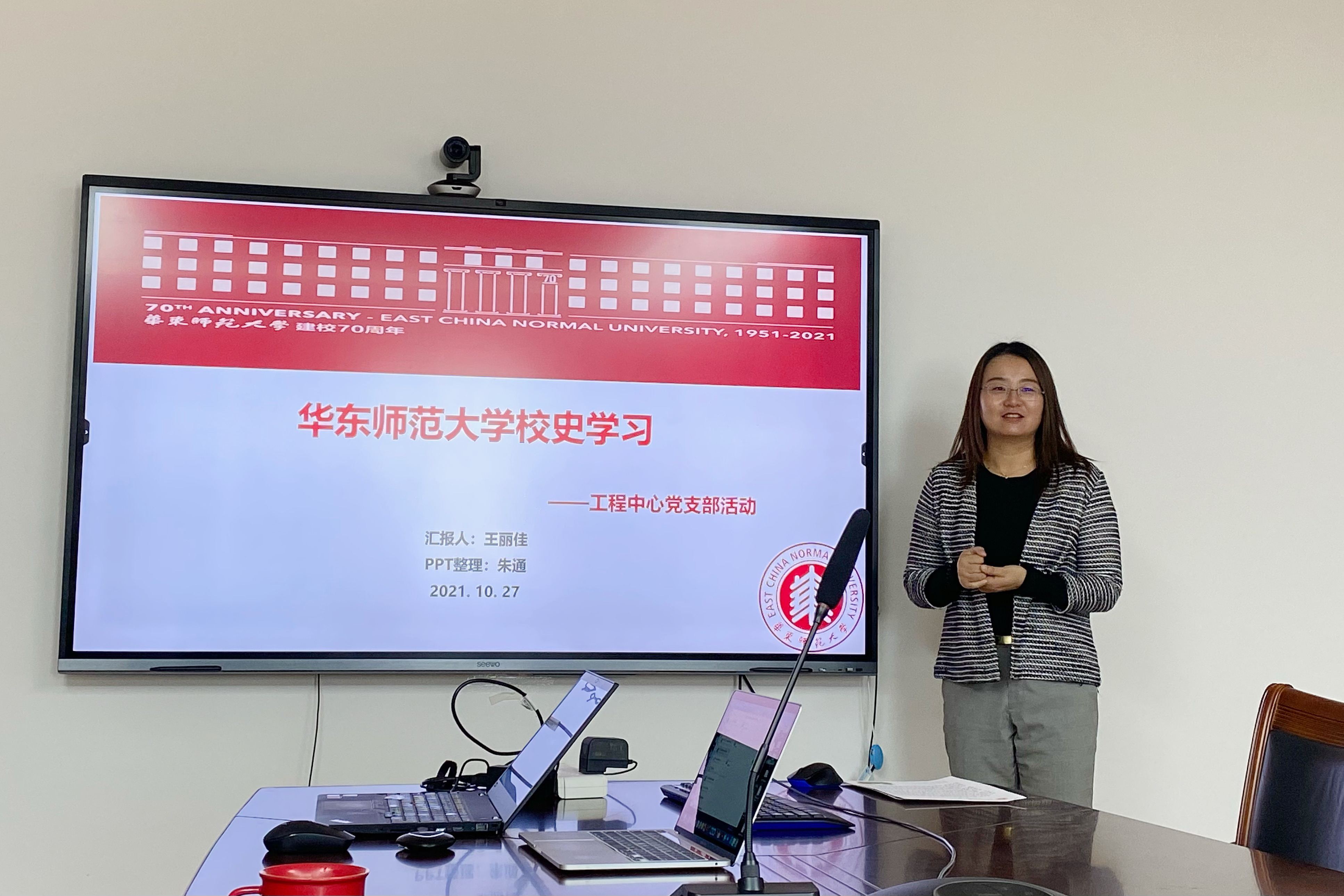为持续推进党史学习教育,引导党员迎接党的十九届六中全会召开,同时以庆祝建校70周年为契机,引导党员同志争做知史爱校、行动建校、奋斗荣校的典范,上海分子新药研究中心党支部将党史学习教育和师生熟悉的校史校情相结合,于10月27日下午在理科大楼B1602会议室开展10月主题党日活动,支部党员参加会议,会议由支部书记张亮主持。
