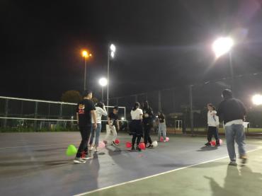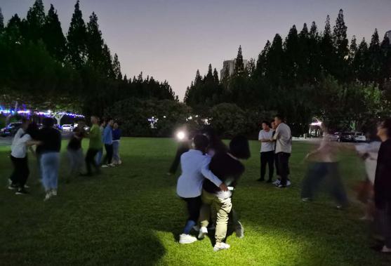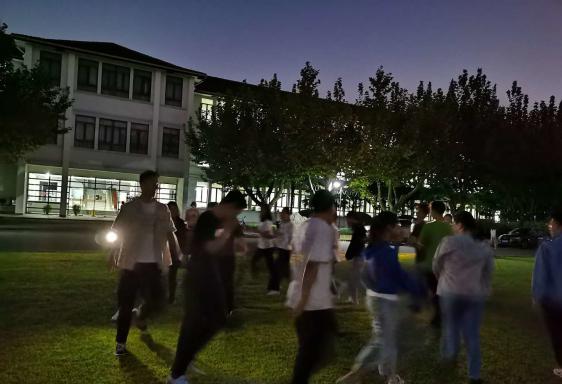 落单的人被淘汰。作为第一个游戏,一下子活跃了现场的气氛,让陌生的同学相互熟悉了起来。看,大家都开心到“模糊”了。