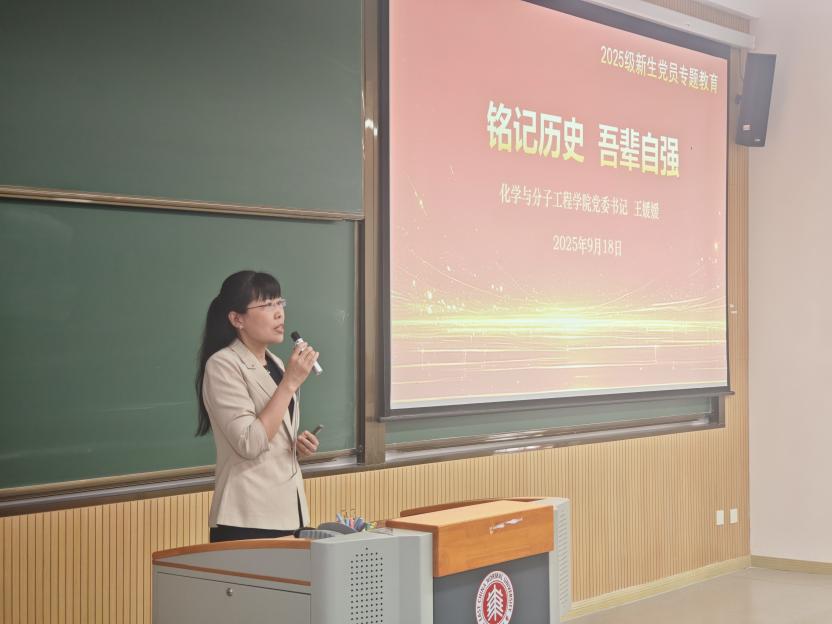 立足化学学科特色,王老师对新生党员提出殷切期望,面对全球科技竞争与人类共同挑战,青年学子需勇攀科学高峰,在基础研究突破与应用转化创新中展现担当,凝聚攻克“卡脖子”技术的持久动力,为推进强国建设、民族复兴伟业贡献青春力量。