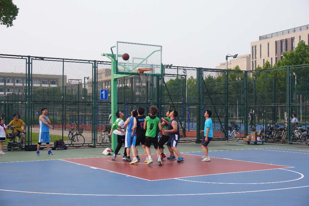 在闵行校区西篮球场举办了一场师生篮球赛,活动由闵行研会文体部组织开展。
