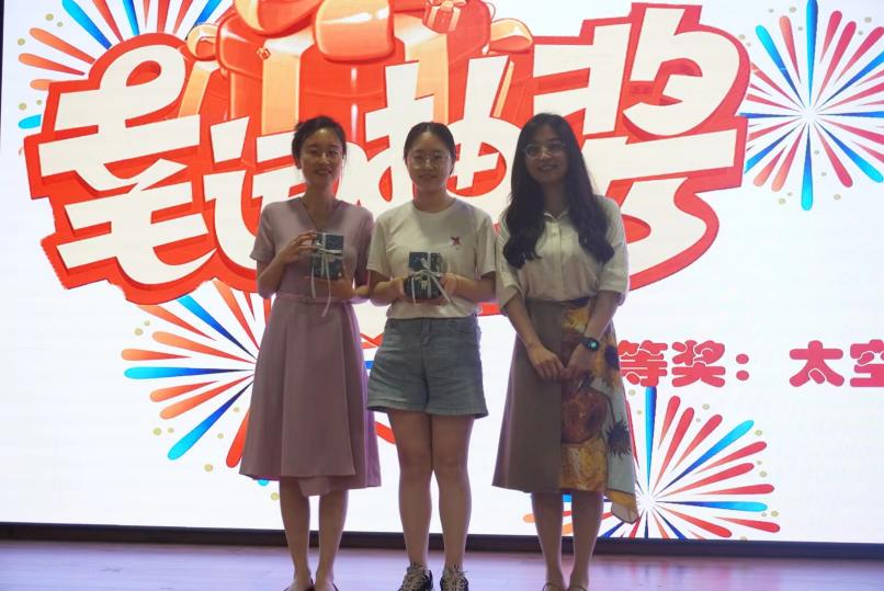 晚会节目结束后,现场开展了最后一轮游戏——“倒着说”。参赛者们需要将主持人的话反着说,“嘴瓢”的时候让现场观众笑声不断。随着抽奖环节一等奖的揭晓和毕业感言的抒发,本次晚会也画上了圆满的句号。