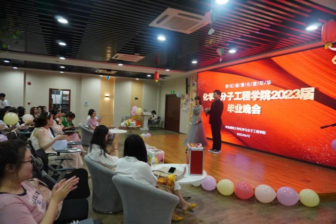 节目开始后,王婷婷老师为毕业生们现场致辞,她叮嘱毕业生们不忘初心,继续奋斗,不断成长。随后,大屏上播放了化学院老师们和毕业生家长们的祝福视频。点点回忆拼出成长的轨迹,声声祝愿奏起启航之高歌。许多感动留在了过去,但也珍藏在此刻即将告别师大、启程远方的毕业生的心中。